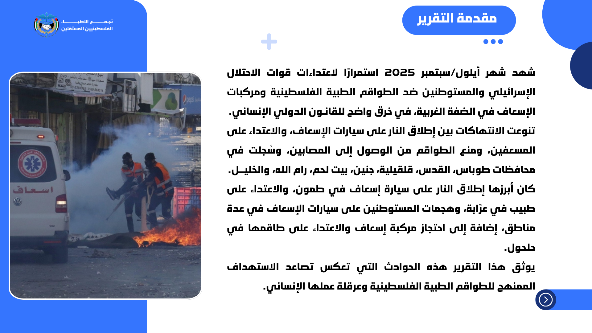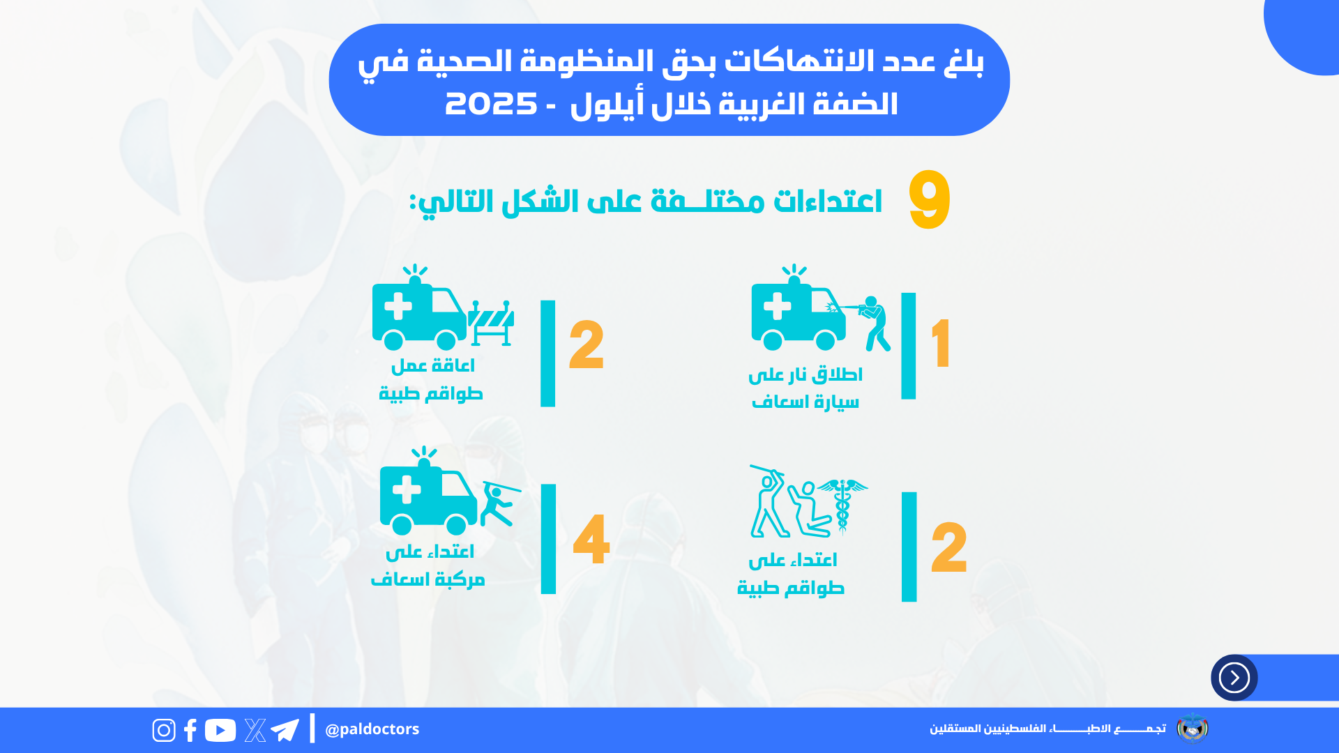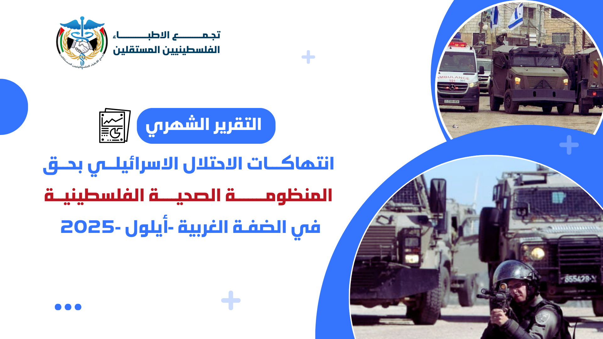الرئيسية/انتهاكات بحق الصحة/تقارير شهرية/انتهاكـــات الاحتلال الاسرائيلــي بحــق المنظومـــــــة الصحيــــة الفلسطينيــة في الضفـة الغربية -أيلول -2025 الأخبارانتهاكات بحق الصحةتقارير شهرية انتهاكـــات الاحتلال الاسرائيلــي بحــق المنظومـــــــة الصحيــــة الفلسطينيــة في الضفـة الغربية -أيلول -2025 التقرير الشهري أيلول -2025 paldoctsمنذ 21 ساعة 10 أقل من دقيقة تحميل التقرير PDF كاتب paldocts View all posts paldoctsمنذ 21 ساعة 10 أقل من دقيقة فيسبوك تويتر لينكدإن ماسنجر ماسنجر واتساب تيلقرام مشاركة عبر البريد طباعة