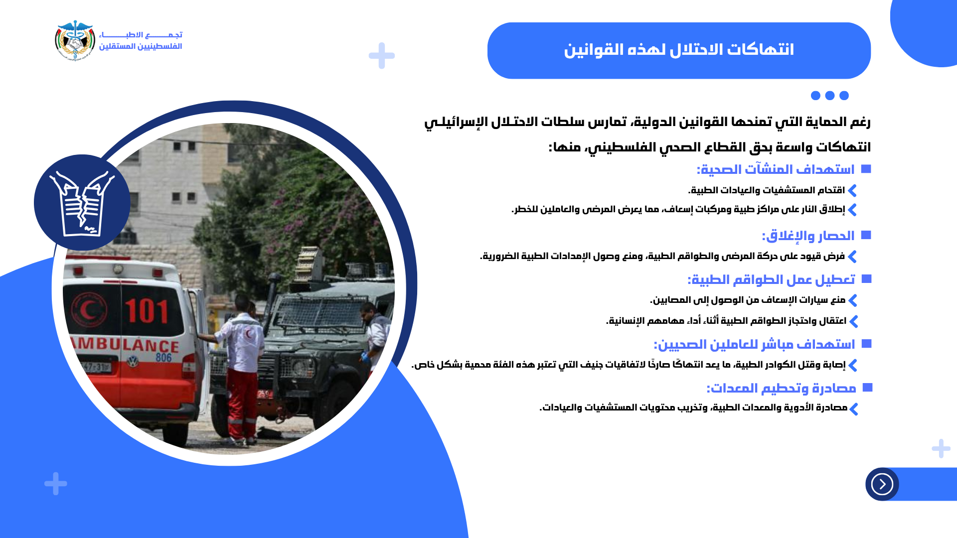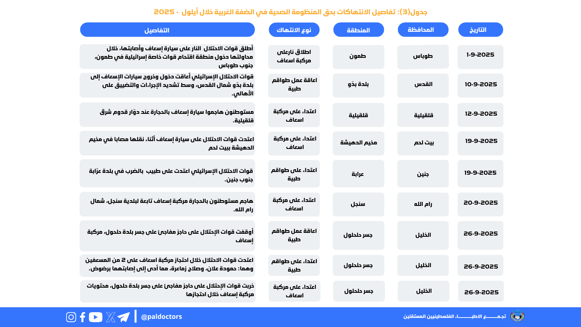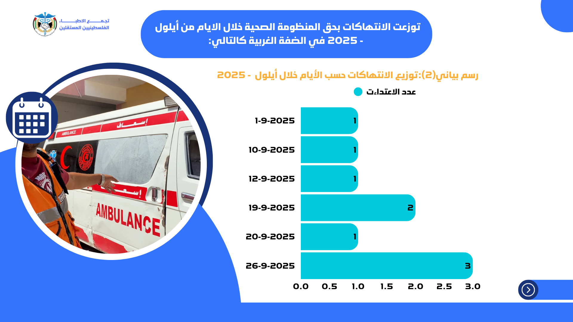 الرئيسية/انتهاكات بحق الصحة/تقارير شهرية/انتهاكـــات الاحتلال الاسرائيلــي بحــق المنظومـــــــة الصحيــــة الفلسطينيــة في الضفـة الغربية -أيلول -2025 الأخبارانتهاكات بحق الصحةتقارير شهرية انتهاكـــات الاحتلال الاسرائيلــي بحــق المنظومـــــــة الصحيــــة الفلسطينيــة في الضفـة الغربية -أيلول -2025 التقرير الشهري أيلول -2025 paldoctsمنذ 21 ساعة 10 أقل من دقيقة تحميل التقرير PDF كاتب paldocts View all posts paldoctsمنذ 21 ساعة 10 أقل من دقيقة فيسبوك تويتر لينكدإن ماسنجر ماسنجر واتساب تيلقرام مشاركة عبر البريد طباعة